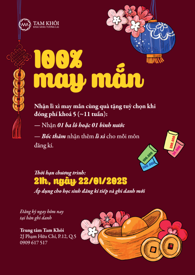 ĐỪNG BỎ LỠ quà tặng độc quyền như là ba lô đi học, bình nước và bao lì xì làm bởi Tam Khôi.