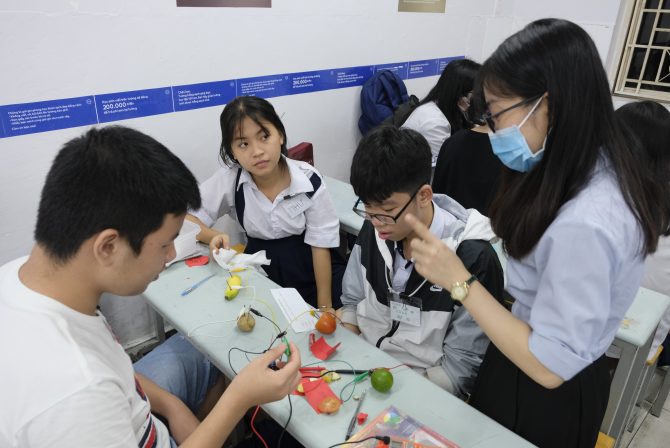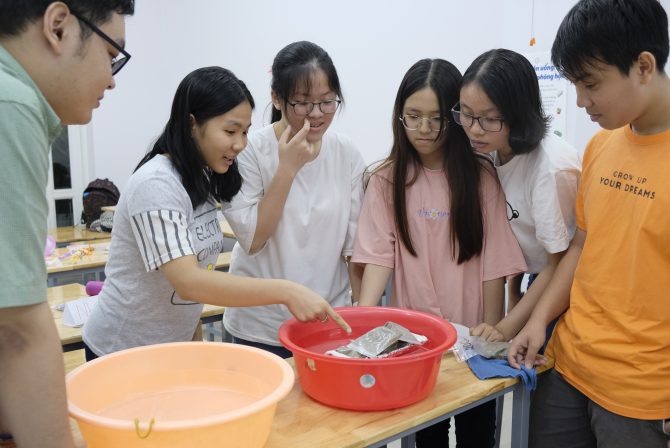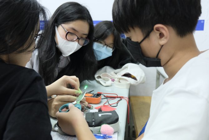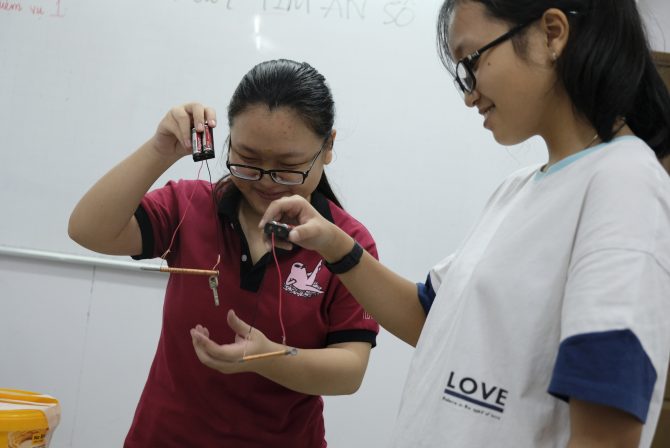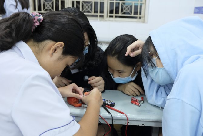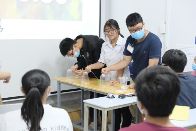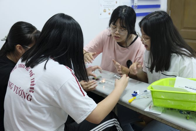 Các kiến thức được áp dụng trong lớp Thực hành khoa học chủ yếu là kiến thức môn Vật lí. Hãy cùng xem qua hình ảnh của lớp học nhé.