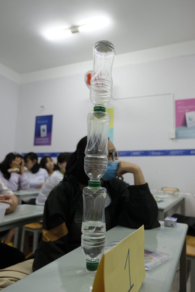 Học sinh được thí nghiệm với các vật dụng mô phỏng tự chế.