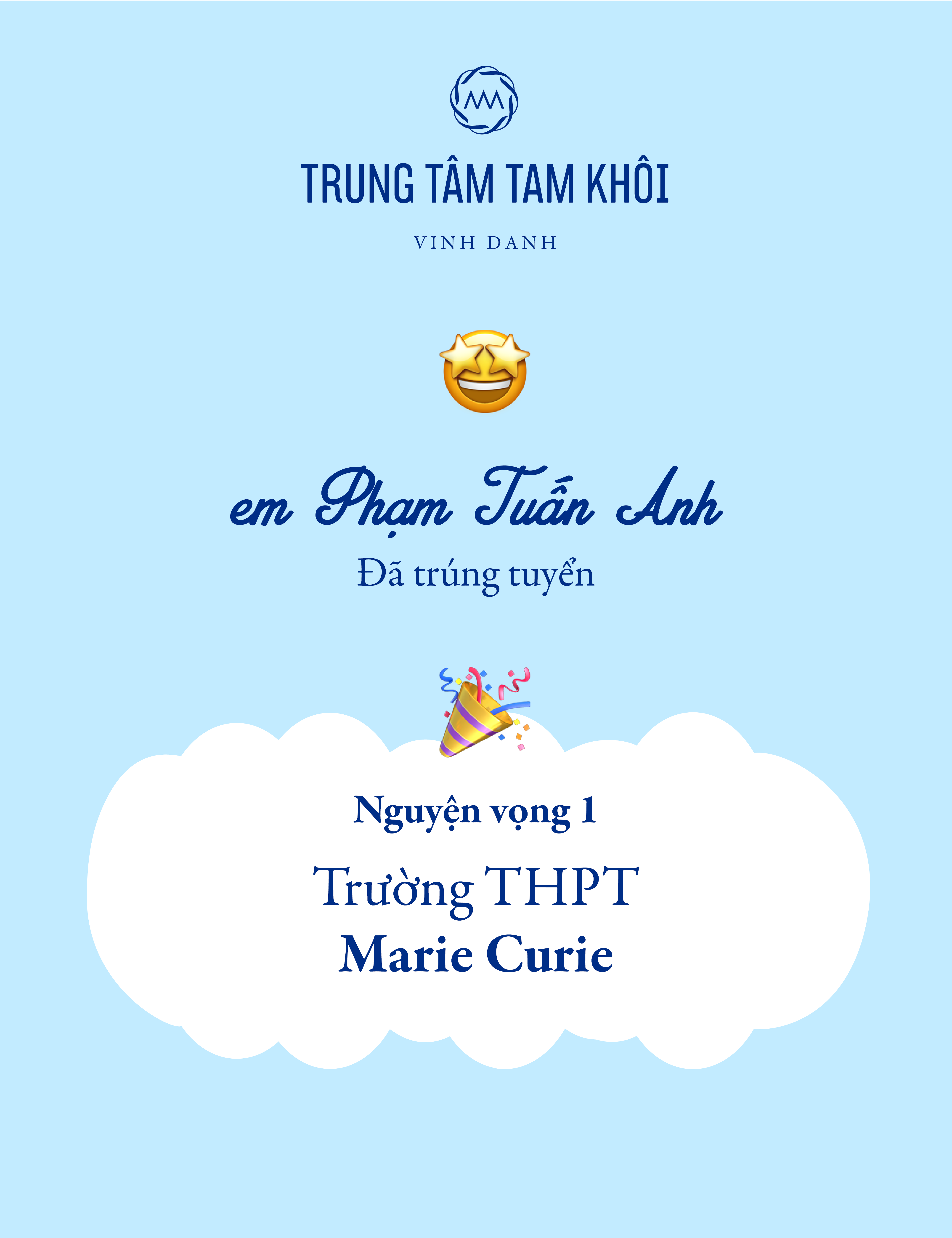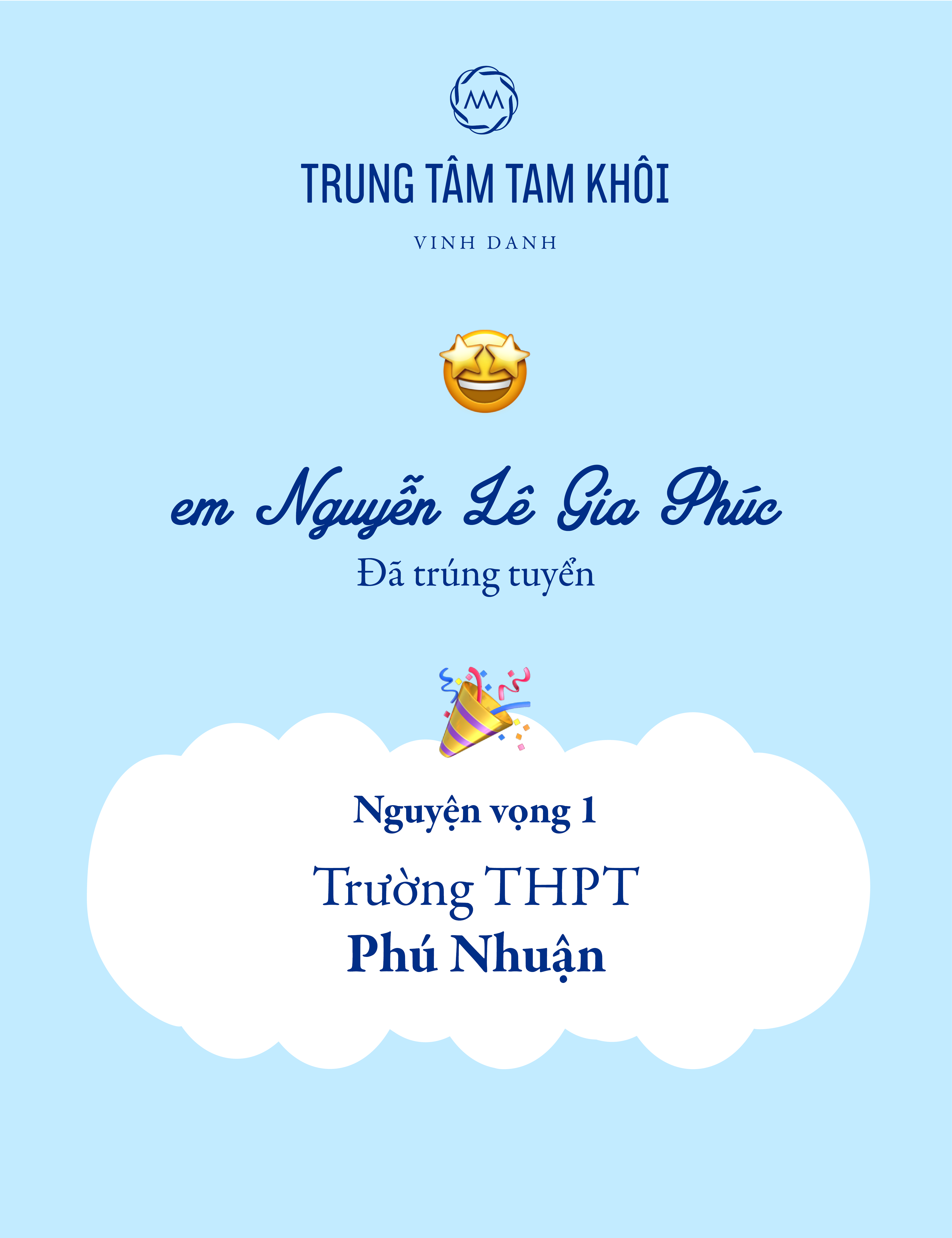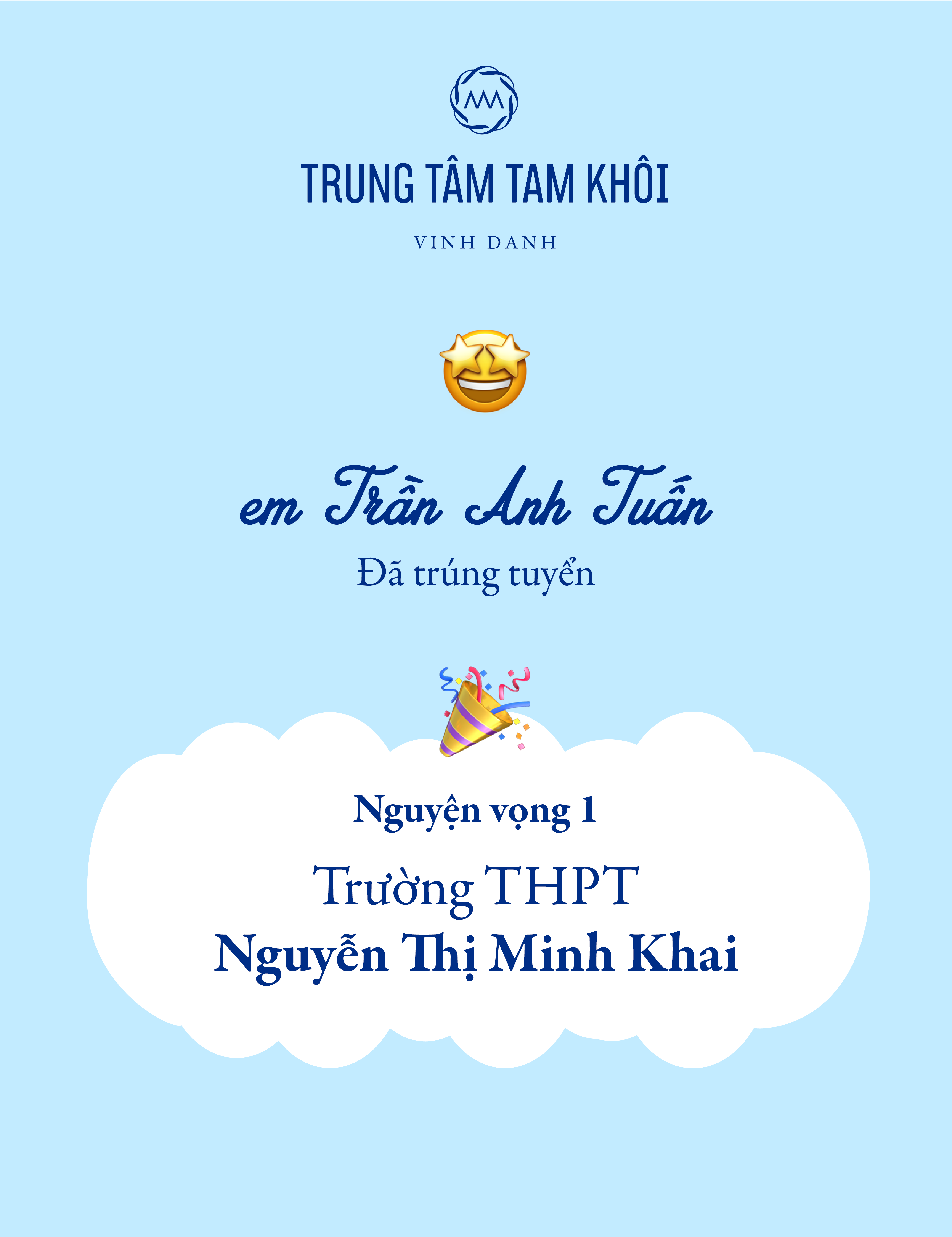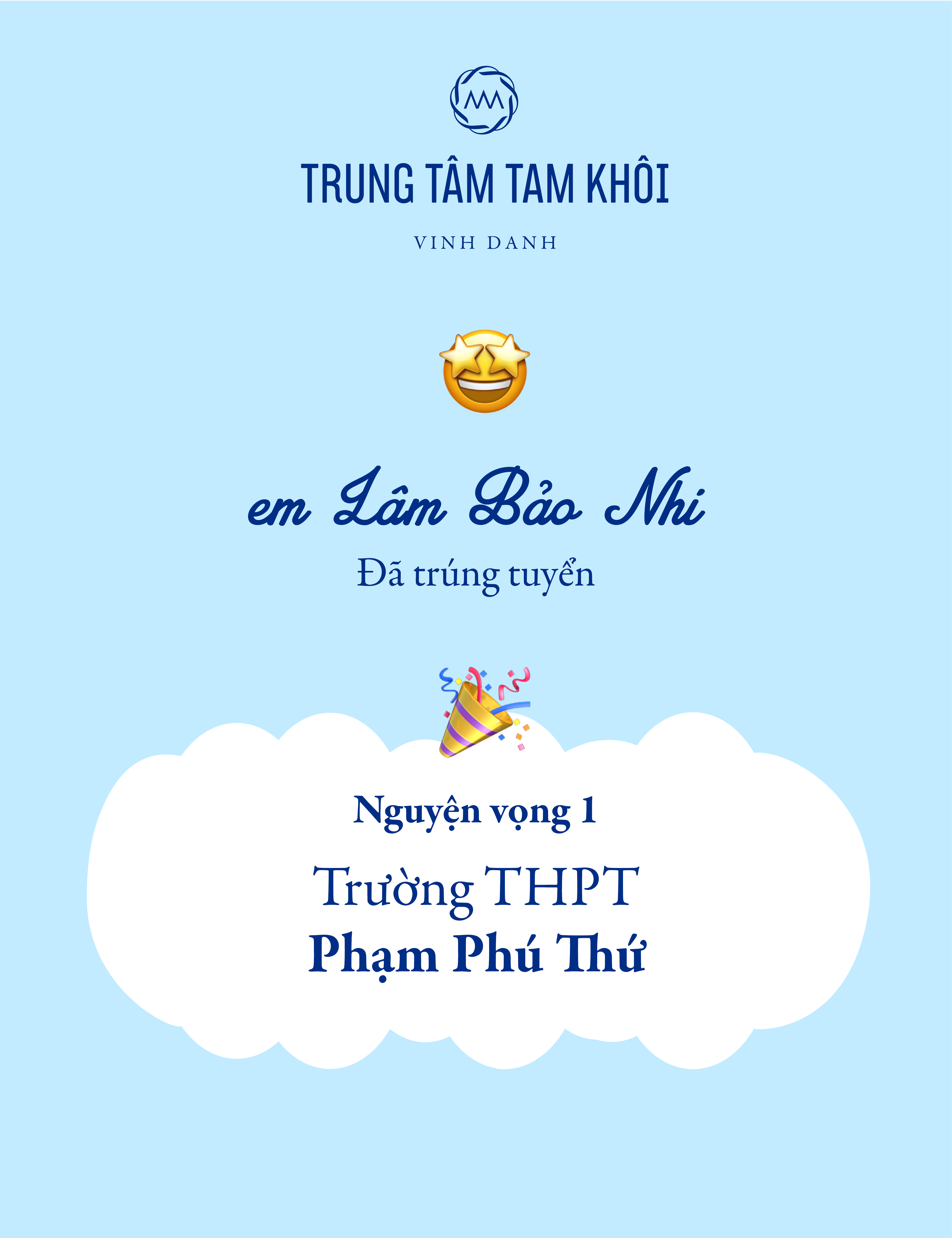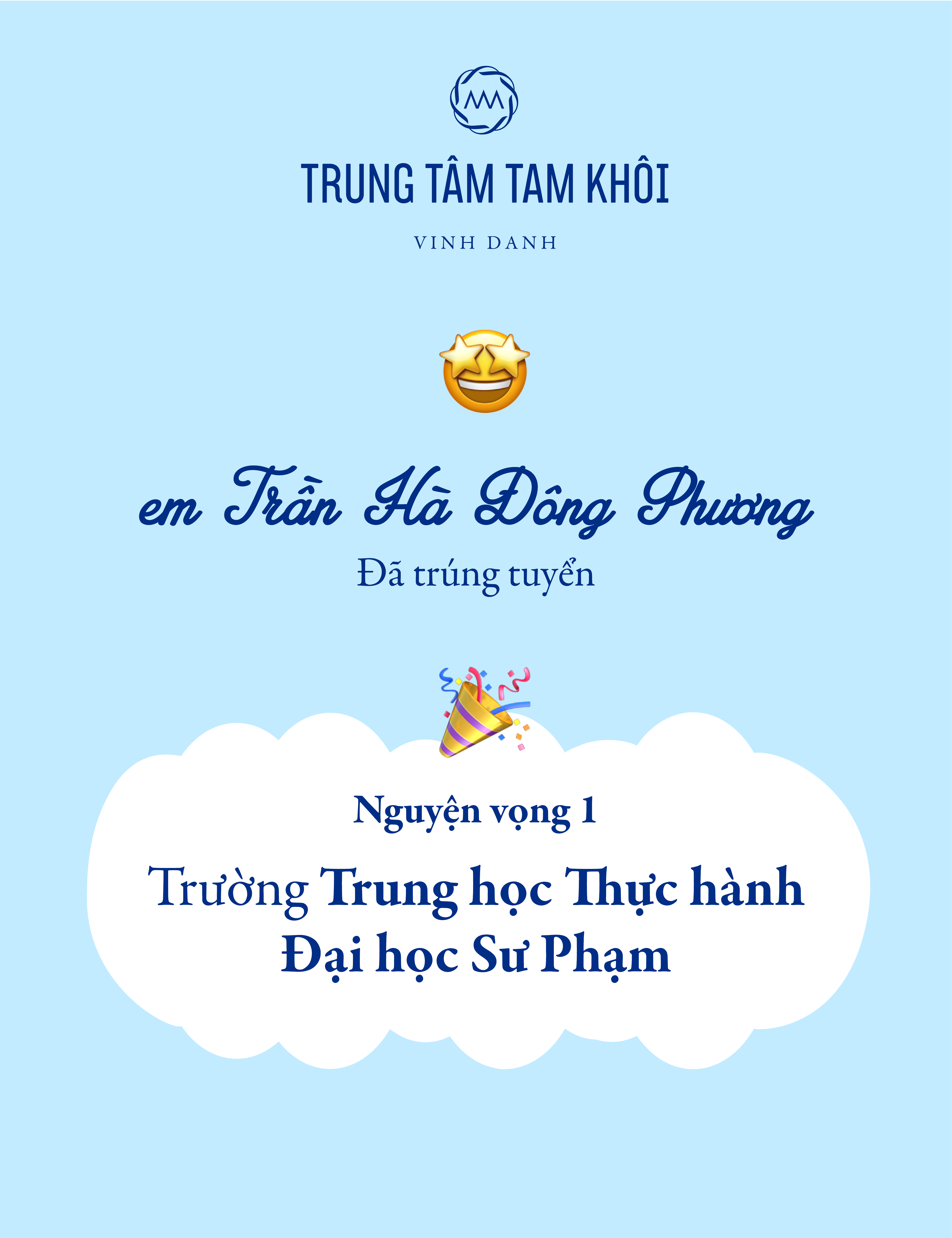14-06-2018 11:24 Vinh danh học sinh đạt kết quả cao kỳ thi tuyển sinh lớp 10 năm 2022 14-06-2018 11:24 Vinh danh học sinh đạt kết quả cao kỳ thi tuyển sinh lớp 10 năm 2022 Trung tâm Tam Khôi chúc mừng các em học sinh đã đạt kết quả xuất sắc trong kỳ thi tuyển sinh lớp 10 năm học 2022 - 2023 vừa qua.